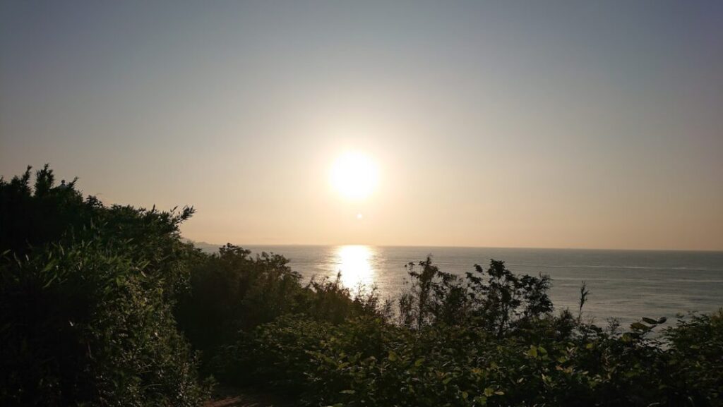 朝日は集落と逆側から登ります。オススメのスポットは、菅島灯台、菅谷、おんま浜です。